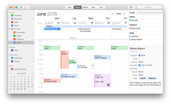 BusyCal یک تقویم فوق العاده برای سیستم عامل شما بوده که با قابلیت های فوق العاده خود شما را مجذوب میکند. نرم افزار BusyCal به شما کمک میکند تا بتوانید علاوه بر یک تقویم تمامی فعالیت های روزانه خود را در آن یادداشت کرده و در روز مشخص آنها را انجام دهید. در این تقویم وضعیت آب و هوایی، دما، مناسبت های مختلف و بسیار دیگر از مواردی که به شما کمک میکنند تا یادآوری از اطلاعات روز شود وجود دارد. همچنین میتوانید برچسب هایی ایجاد کرده و در آن ها کار ها مهم آن روز را نوشته و در روز مورد نظر خود بچسبانید تا با فرا رسیدن روز موعود آنها را انجام دهید. از دیگر ویژگی های BusyCal میتوان به شخصی سازی تقویم اشاره کرد، به این صورت که میتوانید رنگ، فونت، اندازه، ساختمان تقویم و… را تغییر داده و به اشکال دلخواه خود در آورید. برای تایم های غذایی خود لوگوی غذا را برروی تقویم بیاندازید. نرم افزار پیش رو به صورت اتوماتیک با برنامه های iCal ، iPhone ، iPad ، iPod Touch هماهنگ میشود، بنابراین نگران انجام کار های اضافی جهت هماهنگ سازی این برنامه با برنامه های دیگر نباشید. علاوه بر این شما میتوانید تقویم خود را با تمامی اطلاعات موجود در آن از طریق شبکه های اجتماعی مختلف با دوستان و آشنایان خود به اشتراک بگذارید.