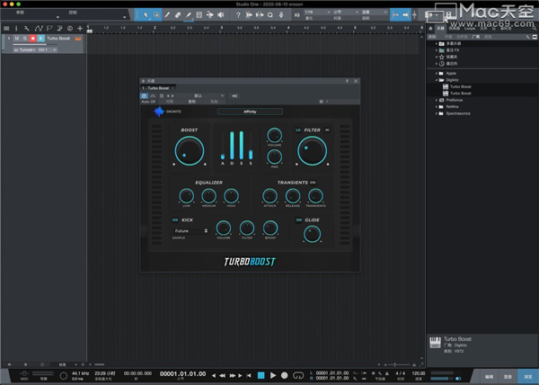 یک افزونه برای علاقمندان به موسیقی میباشد که دارای یک عملکرد ویژه Boost برای لایه کلید 808 و Kick است که باعث می شود قدرت بیشتری به تن های پایین تر اضافه شود . علاوه بر این ، این افزونه دارای یک اکولایزر داخلی و قابلیت کنترل گذرا است . Digikitz Turbo Boost یک پخشکننده موسیقی پپش فرض دارد که به شما این امکان را میدهد که فایلهای صوتی را نمایش میدهد . پخشکنندههای صوتی داخلی، امکانات بسیار محدودی دارند و هیچ گونه تنظیم سفارشی را ارائه نمیدهد. افزونه Digikitz Turbo Boost دارای 40 صدای داخلی بم اضافی دارد ، بنابراین می توانید به راحتی یک اثر ممتاز را به 808 موجود اضافه کنید. این افزونه برای 808 اصلی و لایه Kick یک عملکرد اختصاصی Boost دارد که booste ییشتری را به تن های کم اضافه می کند. علاوه بر این ، این افزونه دارای یک اکولایزر داخلی و کنترل گذر دارد . ویژگی های اصلی Digikitz Turbo Boost : ساخته شده برای ایجاد صدای ضربات محکم ، 40 باس از پیش تنظیم شده ، 100 باس از پیش تنظیم شده ویژه ، تقویت عملکرد برای لایه اصلی ، ساخت موزیک در اکولایزر ، کنترل گذراگالری تصاویر :