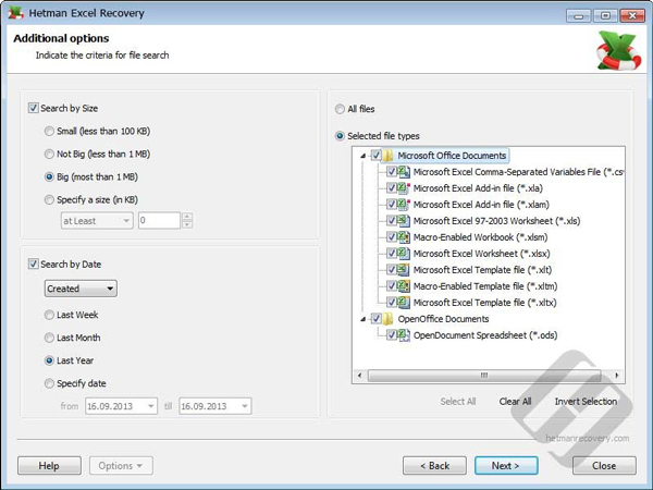 یک نرم افزار کم حجم و قدرتمند برای بازیابی اسناد Excel میباشد . نرم افزار Hetman Excel Recovery با الگوریتم های قدرتمند آنالیز دیسک می تواند اسناد خراب یا از دست رفته را بازیابی کند . این نرم افزار با محیط کاربری آسان شما را در طی فرآیند بازیابی راهنمایی می کند تا بتوانید بهترین گزینه را برای دستیابی به حداکثر سرعت بازیابی برسید . همچنین این نرم افزار علاوه بر اسناد ورد و اکسل آفیس ، قادر به بازیابی فرمت OpenDocumet در نرم افزارهای Open Excel , Libre و Star Excel نیز میباشد .ویژگی های نرم افزار Hetman Excel Recovery :