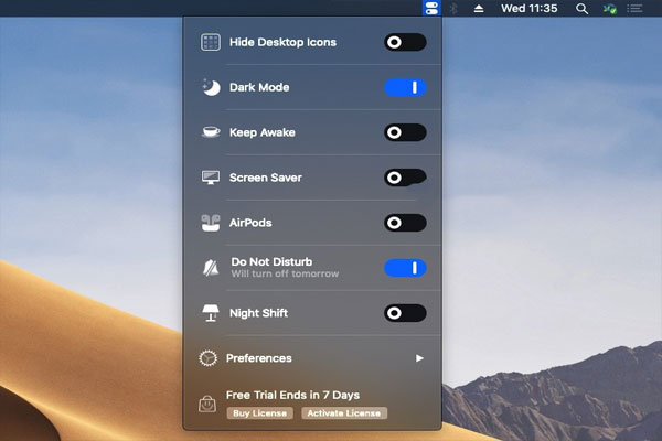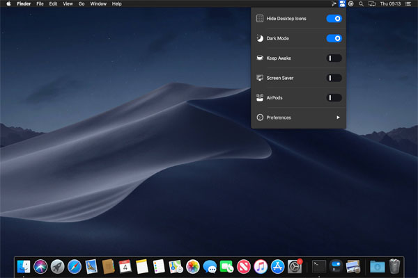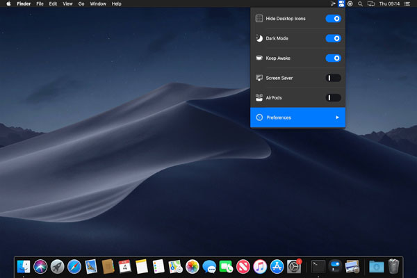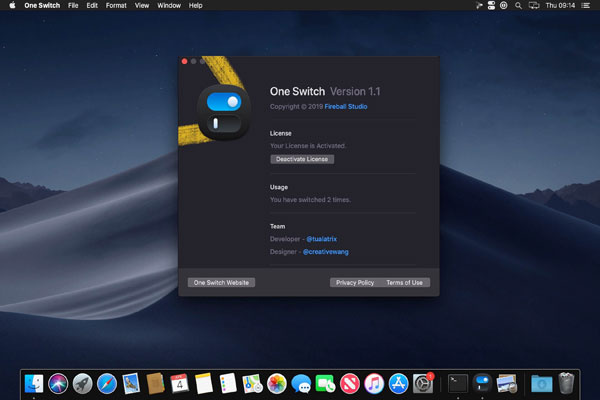 One Switch یک نرم افزار کم حجم و فوق العاده کاربردی است که به جرات می توان گفت که برای تمامی سیستم عامل های مک یک نرم افزار ضروری به شمار می رود. نرم افزار One Switch با ارائه دسترسی های سریع به چند کلید مهم ، برای بهبود کارایی شما در هنگام استفاده از سیستم خود طراحی شده است. One Switch می تواند از نوار منو شما باز شود ، و به شما امکان می دهد فقط با چند کلیک ویژگی های سیستم خاصی را تغییر دهید. این ویژگی های عبارتند از: مخفی کردن آیکون های دسکتاپ، ایجاد زمینه تاریک برای اذیت نشدن چشمان شما، جلوگیری از استندبای شدن سیستم و همچنین اجرای Screen Saver و بسیاری از ویژگی های مهم. گفتنی است که تمامی این ویژگی ها فقط با یک کلیک در این نرم افزار اجرا می شوند.