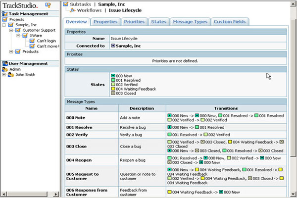 یک موتور گردش کار بسیار قابل تنظیم است که می تواند برای ردیابی پیشرفت هر گونه کار مانند حل مسئله، جمع آوری نیازها،  پشتیبانی  نظارت بر پروژه، راه اندازی سخت افزار، استخدام کارکنان و مدیریت اسناد استفاده شود. نرم افزار TrackStudio Enterprise هر تعداد حالت ها و انتقال ها به این معنی است که شما می توانید به هر تعداد که نیاز دارید گردش کار ایجاد کنید که عملکردهای کسب و کار شما را شفاف سازی می کند و با استفاده از این نرم افزار در وقت محدود شما صرفه جویی می شود. در این نرم افزار ایمیل های ورودی و خروجی همراه با SOAP، یک برنامه کاربردی را ایجاد می کند که به راحتی می تواند به سایر سیستم ها مرتبط شود.در این برنامه پرطرفدار، وظایف را می توان با مشتریان، پیمانکاران و اشخاص ثالث به اشتراک گذاشت بدون اینکه به اطلاعات تجاری و شخصی اختلالی وارد شود.