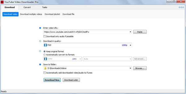توانایی دانلود ویدیو های با کیفیت UHD 4K, QHD 2K, FHD 1080p, HD 720p و ویدیو های 3 بعدی را از YouTube دارا میباشد. YouTube Video Downloader Pro همچنین با دارا بودن موتور دانلود قدرتمند که شما را قادر میسازد تا بتوانید به صورت همزمان چندین ویدیو را دانلود نموده و به صورت خودکار و متناسب با دستگاه مورد نظر و در فرمت های MP4, FLV, WMV, MOV, AVI, MPG, VOB, WEBM, DVD, VCD تبدیل نمایید. همچنین توانایی اضافه کردن فایل های دانلود و یا تبدیل شده به صورت خودکار به iPhone, iPad, iPod را نیز دارا میباشد.ویژگی های نرم افزار YouTube Video Downloader Pro: